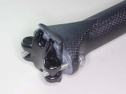 カーボン製のマット仕上げの軽量シートポスト。重量203g。オフセット:0mm